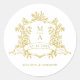 Sticker Rond Élégant or Floral Crest Monogrammes Mariage