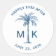 Sticker Rond Élégant palmier Monogramme Mariage tropical bleu