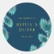 Sticker Rond Elégant Peacock Feathers et Mariage Or