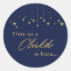 Sticker Rond Élégant pour nous l'enfant est né or bleu Noël