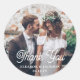 Sticker Rond Élégant Retro Script & Photo Mariage Merci