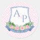 Sticker Rond Élégant Rose Et Marine Monogram Mariage Crest Favo