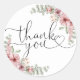 Sticker Rond Élégant Rose Floral Heart Script Merci