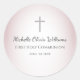 Sticker Rond Élégant Rose Or Simple Croix Première Communion