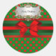 Sticker Rond Élégant Rouge & Vert Polka Dot Ribbon Noël