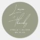 Sticker Rond Élégant Sage Green Script Love + Merci Mariage