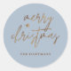 Sticker Rond Élégant Script Joyeux Noël Gold Star Bleu