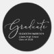 Un élégant autocollant noir pour vos annonces de remise de diplômes, invitations, cartes de remerciement et faveurs de fête avec "Graduate" dans un script blanc chic et le nom de la diplômée, l'année de classe et l'école dans la simple typographie blanche moderne.