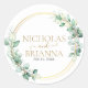 Élégant Sticker Arrondi Eucalyptus Gold Botanical Mariage Classic. Doté de feuilles d'eucalyptus aquarelle et d'un cadre géométrique rond d'or.