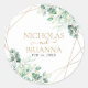 Élégant Sticker Arrondi Géométrique Mariage Eucalyptus Or Vert. Doté d'une aquarelle feuille d'eucalyptus et d'un cadre géométrique doré.