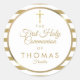 Sticker Rond Elégante Croix d'or Stripe Première Sainte Communi