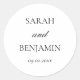 Sticker Rond Élégante enveloppe Mariage simple en noir et blanc