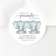 Des autocollants mignons pour vos bébés garçons jumeaux douches faveurs et la correspondance avec "Two Sweet Little Peanuts Are On Their Way" écrit dans un mélange de typographie gris mou et un script élégant et des aquarelles bleu pastel d'éléphants bébés. Personnalisez le nom et la date de la douche de la future mère dans une simple typographie grise.