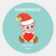 Cute elf tenant un coeur sur des stickers texte turquoise clair et fait main. Le texte peut être personnalisé.
