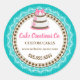 © 2022 Socialite Designs Inc. Élégant autocollant de boîte à gâteau avec une belle bordure en dentelle et arrière - plan rayé.