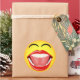 Face - SYFE100 © Sunny Mars Designs. Ces autocollants ronds cool, humoristiques, amusants et de nouveauté présentent une illustration amusante d'un émoticône au visage jaune riant avec une grande bouche ouverte, des dents nacrées blanches, une langue et des yeux fermés. Concept pour l'humour.