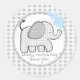 Adorable gris en vichy checker éléphant motif avec des oreilles de pois et des coeurs bleus. Ajoutez aux faveurs et merci aux invités d'y être venus.