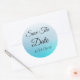 Sticker Rond Enregistrer l'autocollant Mariage bleu Aqua Date