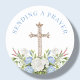 Joli bleu floral envoyant un dessin de prière avec une croix crucifix.