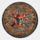 Équipe d'intervention en cas d'éclosion de zombie, logo circulaire avec symbole de risque biologique, AK47, et crâne zombie devant un mur éclaboussé de sang.