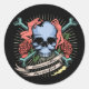 Rocher et rouler crâne et les os croisés graphique avec filles diables, roses et bannières ondulées avec, "Eternally Grateful" en écriture script, sur un arrière - plan d'éclatement de soleil. T-shirts, cartes, cadeaux.