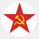 Subtil mais efficace - l'étoile rouge classique posée sur un arrière - plan blanc, encastrée avec un marteau jaune et faucille.