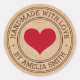 Autocollants avec un cœur rouge et texte "Fabriqué avec amour" et nom personnalisé sur un fond aspect papier Kraft imprimé. Utiliser comme sceaux d'enveloppe, autocollants pour cadeaux et faveurs, emballage de produits, etc