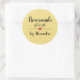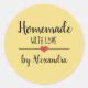 Sticker Rond Fabriqué maison avec amour, script jaune personnal