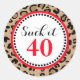 autocollant 40e anniversaire parfait pour les faveurs de la suce ou de la suce. Caractéristiques rouge et empreinte de léopard.