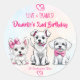 Sticker Rond Faisons pawty rose mignonette chiots fête d'annive