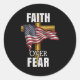 Sticker Rond Faith Over Fear Christian Cross American Flag Tee