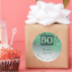 Sticker Rond Falling Green Parties scintillant, 50th Birthday M