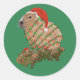 Sticker Rond Famille Capybara de Noël enrobée de lumières