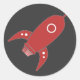 Sticker Rond Fat Retro Rocket Ship Rouge