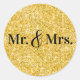 Sticker Rond Faux Gold Parties scintillant M. & Mme Mariage