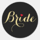Sticker Rond Faux Gold Script Bride Mariage Fête des mariées no