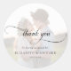 Design moderne et élégant imprimé Delicate Faux Vellum Effet Photo Calligraphie Script Merci Classic Round Sticker Mariage qui peut être customisé avec votre texte. Cliquez sur le bouton "Customiser" et utilisez notre outil de conception pour modifier ce modèle. Découvrez le magasin Graphic Art Design pour d'autres produits qui correspondent à ce design !