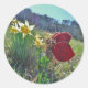 Sticker Rond fée à aile rouge et jonquilles