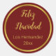 Sticker Rond Feliz Navidad Oro y Rojo Oscuro con Su Nombre