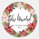 Sticker Rond Feliz Navidad Script Red Poinsettia Wreath