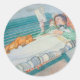 Une femme se reposant sur un banc extérieur avec son dachshund sur ses genoux. Aquarelle suédoise vintage par Carl Larsson.