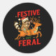 Sticker Rond Festive But Feral Funny Christmas Raccoon Riding R