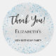 Un arrière - plan faux argenté. Décoré de faux parties scintillant bleu, brille. Personnalisez et ajoutez un nom. Texte : Merci !