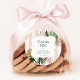 Fête de mariage tropical rayures rose rétro Autocollant rond classique.
