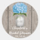 Sticker Rond Fête des mariées Monogramme Mason Jar Blue Hydrang