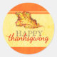 Bon thanksgiving étiquette de feuilles d'automne . Beau autocollant simple feuille d'automne grâces en orange et jaune. Conception et dessin de Sarah Trett pour www, mylittleeden.com