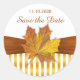 Mariage Sauvez la date Sticker avec feuille d'érable d'automne dorée et rayures d'or. Veuillez noter que le ruban est l'image imprimée.