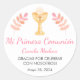 Agrega un toque de encanto a tu celación de primera comunión con este Sticker de Primera Comunión con Cáliz y hojas rosadas en Acuarela. Con bonitas hojas rosadas de acuarela y un lindo cáliz, sticker de este es perfecto para añadir un mensaje personalizado a tus recuerdos de fiesta o invitaciones. Totalmente personnalisable, es una adición encantadora a cualquier evento de primera comunión. Disponible en español.