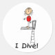 Une figurine en bâton dans un maillot de bain rouge sur le point de prendre une plongée et un texte de style enfant qui dit "I Dive" sont présentés sur ces mignons T-shirts, tasses, sacs fourre-tout, autocollants, magnets, et plus encore.