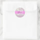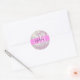 Fille pastel lilac shimmer parties scintillant bokeh scintillent nom monogramme et autocollant rond classique initial. Votre nom personnalisé et votre monogramme sont écrits dans un élégant script écrit à la main avec un arrière - plan rose. Un cadeau d'anniversaire ou de Noël parfait !